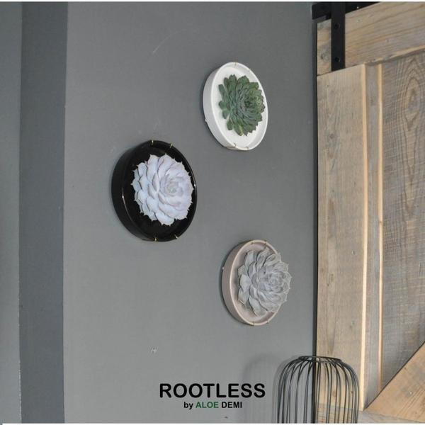 ROOTLESS-Sukkulenten werden in einem Kulturtopf gezüchtet und wachsen auf die richtige Größe heran. Wenn die Rosette der Pflanze groß genug ist, wird sie aus der Blumenerde herausgeschnitten. Andere Bezeichnungen für ROOTLESS sind Schnittfettpflanze, Schnittpflanze, Schnitt-Echeveria und Schnitt-Sukkulente.