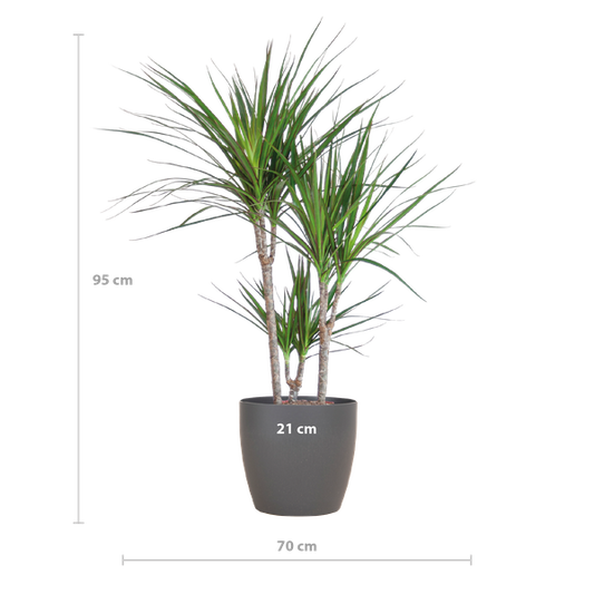 Dracaena Marginata mit Viber-Topf grau – 95 cm – Ø21